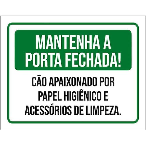 Placa Mantenha Portas Fechada Cão Papel Higienico 36x46 Informações do Produto: Placas decorativas fabricadas com poliestireno de alto impacto PSAI de 2mm e impressão ultravioleta. - Medidas: 36cm x 46cm - Fixação: Todas as placas possuem adesivo dupla face para aplicação em qualquer tipo de superfície lisa. de 12 meses e disponibilidade imediata. Marca: Não Informado