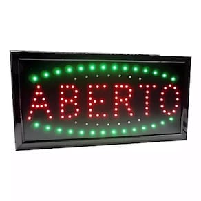 CARACTERÍSTICAS: - Tela: LED Display; - Medidas da placa: 48 cm (Largura) x 25cm (Altura) x 2,5cm (Espessura); - Uso Recomendado: Interno; (mantenha em ambiente fora do alcance da chuva e sol intenso) - Cor/Acabamento: Preto; - Peso: 625 gramas; - Material/Composição: Plástico ABS e Lâmpadas de LED; - Baixo consumo de energia e muito mais longa vida útil; - Brilho intenso com ótima visibilidade durante o dia e noite; - Possui 1 corrente para pendurar e 2 ganchinhos no verso que facilita a fixação.