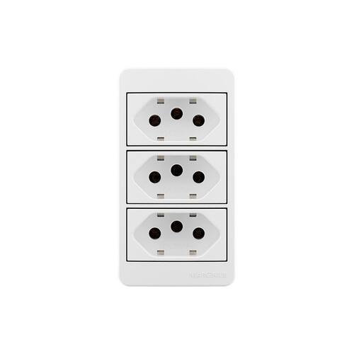 Placa para Condulete Caixa 3/4" com Tomada Tripla MarGirius Sleek 2P+T 20A Branca