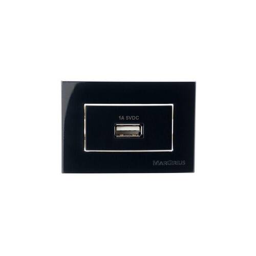 Placa para Móveis 65x45 com Tomada Carregador USB-A MarGirius Sleek 1A 5W Preto Ebony