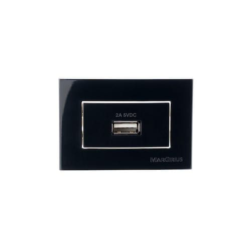 Placa para Móveis 65x45 com Tomada Carregador USB-A MarGirius Sleek 2A 10W Preto Ebony