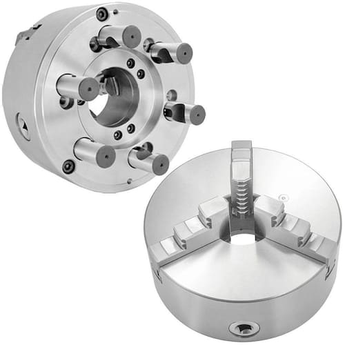 Geralmente, as placas para torno mecânico são produzidas em aço temperado ou ferro fundido, têm alta resistência e durabilidade e são compostas por castanhas reversíveis ou monobloco.
