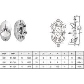 - Placa Autocentrante com 3 castanhas monobloco;