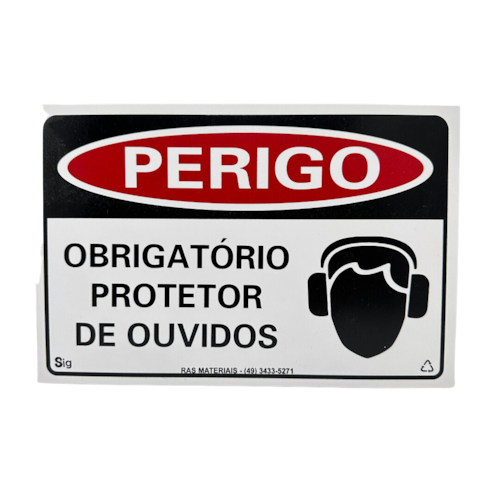 Placa Perigo Somente Obrigatório Protetor de Ouvidos 20x30cm - SIG