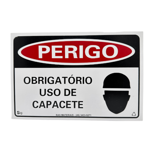 Placa Perigo Obrigatório Uso de Capacete 20x30cm - SIG