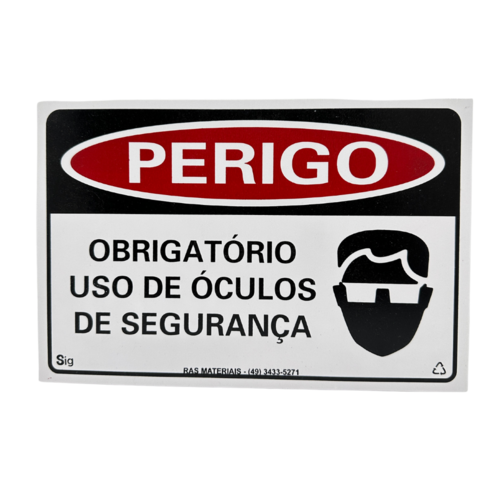 • 1 Placa Perigo Obrigatório Uso de Óculos de Segurança