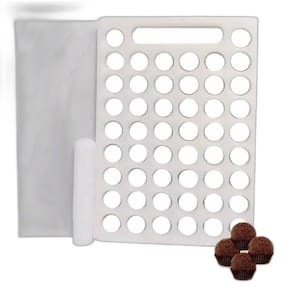 Placa Porcionadora De Doces e Brigadeiro de 21gr e 50 furos Placa Porcionadora De Doces Brigadeiro Beijinho 21g 50 Furos Linha SOLRAC para confeitaria. Excelente produto para garantir o mesmo tamanho do seu doce, rápido boleamento e facilidade no armazenamento. Acompanha: 01 placa dosadora; 01 placa inferior; 01 de destaque do produto; Material: Polietileno Placa Porcionadora De Doces Brigadeiro Beijinho 21g 50 Furos Faça brigadeiros e doces padronizados de maneira rápida e prática. Trazendo profissionalismo e padronização as suas produções. Chega de perder tempo pesando 1 por 1, com a placa porcionadora você aumenta sua produção aumentando sua lucratividade sem perder a qualidade. -produzida em polietileno de alta intensidade material apropriado para alimentos -possui 50 furos -produz porções de 21 gramas Podendo variar até 1g -O kit contém uma placa dosadora, uma tábua para apoio e colocação das porções e um remoção Medidas: Comprimento 28,0 x Largura 19,0 x Espessura 2,5 cm Marca: Não Informado Ean: 7898691213709