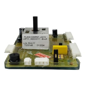 É a responsável por todas as funções da lavadora. É ela quem controla os componentes elétricos e eletromecânicos do produto (tais como o pressostato, válvula de entrada, bomba de drenagem) através da rede elétrica superior de sua lavadora possibilitando a realização de todo o procedimento.