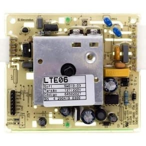 A função da placa de potência é abastecer a energia e conceder comandos para os componentes da lavadora.
