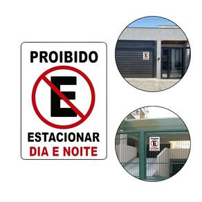 Contém: 01 - Placa sinalizadora de plástico vinil Proibido estacionar dia e noite