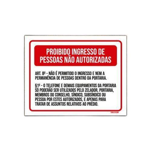 Placa Proibido Ingresso Pessoas Não Autorizadas 18X23