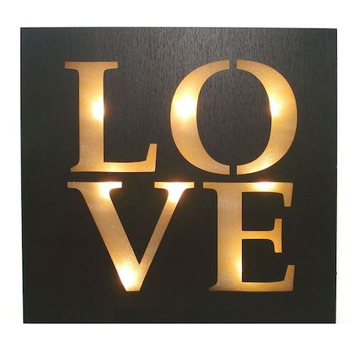Placa Quadro Decorativo Love Iluminado a Led a Pilha 34 x 34cm