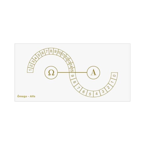 Especificações: Aplicações: Desenvolvido por radiestesistas belgas, o gráfico pode ser utilizado, por exemplo, para obter um número que substitua o nome de um órgão ou de um remédio, ou para tratar uma doença desconhecida. Para iniciar a consulta, coloque o pêndulo sobre o meio da linha entre as casas 15 e 9. Pergunte se por meio desta técnica é possível exprimir numericamente a força cósmica apropriada à determinada finalidade. Se a resposta for positiva, é necessário por o pêndulo sobre o ômega para descobrir quantos algarismos tem o número procurado. Em seguida, coloque o pêndulo sobre o alfa e o dedo indicador na casa 1 do setor ômega para saber qual é o primeiro algarismo do número procurado. Coloque o dedo na casa 2 e repita esse processo de forma sucessiva até chegar ao número de algarismos previamente definido. Com o número em mãos, escreva-o em um papel e coloque sobre a linha ômega-alfa, na parte central. Pesquise se esse é o número procurado. Confirmado o número, coloque o pêndulo sobre o ômega e descubra quantos círculos irão ao redor deste número. Trace os círculos e escreva o número em seu centro. Use seu poder com Responsabilidade