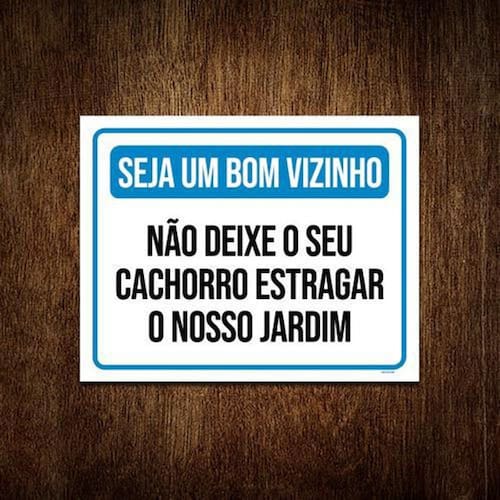 Placa Seja Bom Vizinho Não Deixe Cachorro Estragar 18x23