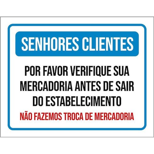 Placa Senhores Clientes Verifique Mercadoria Troca 36x46