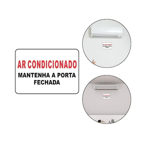 Contém: 01 - Placa sinalizadora de plástico vinil Ar Condicionado. Mantenha a porta fechada