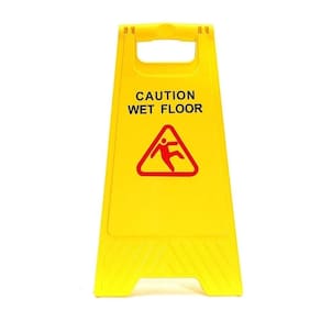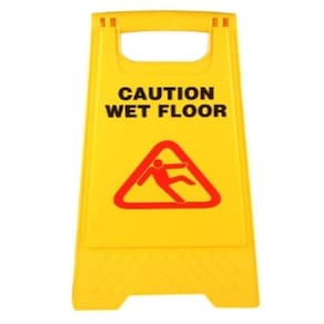 Placa de piso dobrável de alto impacto, destacando perigos como pisos molhados.
