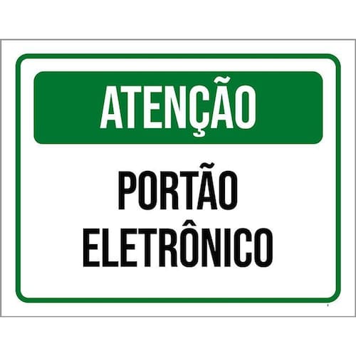 Placa Sinalização - Atenção Verde Portão Eletrônico 36x46 - Informações do Produto: Placas decorativas fabricadas com poliestireno de alto impacto PSAI de 2mm e adesivo vinil automotivo de alta performance. - Medidas: 36cm x 46cm - Fixação: Todas as placas possuem adesivo dupla face para aplicação em qualquer tipo de superfície lisa. de 12 meses e disponibilidade imediata. Marca: Não Informado Ean: 7794882652992