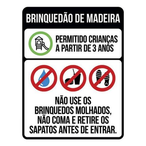 Placa Sinalização - Brinquedão De Madeira Regras Uso 36x46 Placas de sinalizaço fabricadas com poliestireno de alto impacto PSAI de 2mm e impressão ultravioleta.