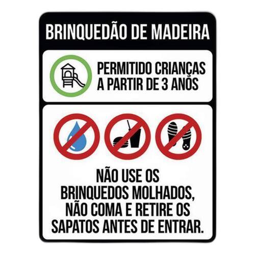 Placa Sinalização - Brinquedão De Madeira Regras Uso 36x46 Placas de sinalizaço fabricadas com poliestireno de alto impacto PSAI de 2mm e impressão ultravioleta.