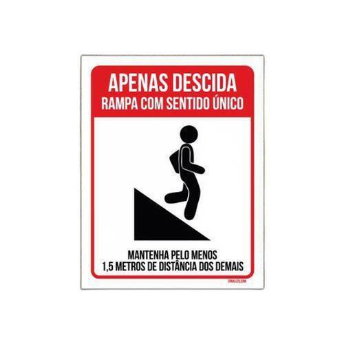 Placa Sinalização - Apenas Descida Rampa Sentido Único 18x23. Fabricada em poliestireno de alto impacto PSAI de 2mm e adesivo vinil automotivo de alta performance. Mede 18cm x 23cm. Fácil fixação com adesivo dupla face em superfícies lisas. Resistente e durável. de 12 meses. Compre agora! Marca: Não Informado