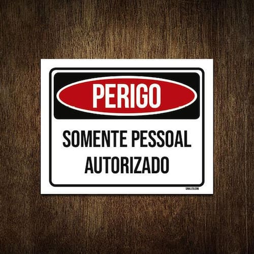 Placa Sinalização - Perigo Somente Pessoal Autorizado 27X35