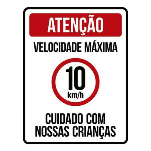 Placa Sinalização - Velocidade Máxima 10km Crianças 36x46 Placas de sinalizaço fabricadas com poliestireno de alto impacto PSAI de 2mm e impressão ultravioleta.
