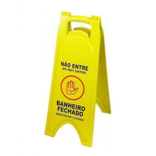 Placa Sinalizadora Banheiro Fechado Seus dizeres são na cor preta e nos idiomas Português e Inglês e a simbologia é na cor vermelha. Todas as placas de sinalização são aditivadas de proteção UV em sua fabricação.