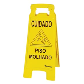 A Placa Sinalizadora "Cuidado Piso Molhado" da BRALIMPIA foi cuidadosamente projetada para esse propósito.