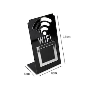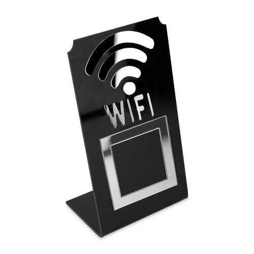 O Display de Acrílico com suporte de mesa é a solução perfeita para facilitar o uso do Wif em seu estabelecimento. Esse prático suporte permite que você coloque um QR code do Wifi de forma visível e acessível aos seus clientes, simplificando a conexão a internet para o conforto do cliente, facilitando envio de comprovantes de pagamentos e acesso ao banco. Uma solução prática e esteticamente agradável para compartilhar informações de rede Wi-Fi de forma rápida e eficiente. Projetadas com um material durável e esteticamente limpo e agradável.