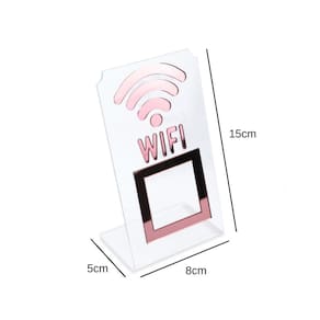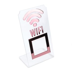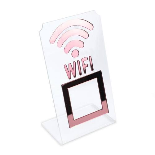 O Display de Acrílico com suporte de mesa é a solução perfeita para facilitar o uso do Wif em seu estabelecimento. Esse prático suporte permite que você coloque um QR code do Wifi de forma visível e acessível aos seus clientes, simplificando a conexão a internet para o conforto do cliente, facilitando envio de comprovantes de pagamentos e acesso ao banco. Uma solução prática e esteticamente agradável para compartilhar informações de rede Wi-Fi de forma rápida e eficiente. Projetadas com um material durável e esteticamente limpo e agradável.