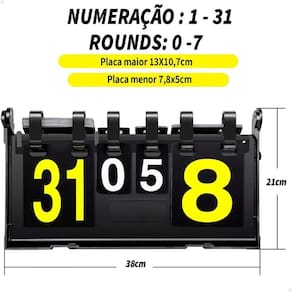 Os números grandes e contrastantes garantem uma leitura fácil, mesmo a distância. Isso garante que todos os participantes e espectadores possam acompanhar a pontuação sem dificuldades, contribuindo para uma experiência mais envolvente.