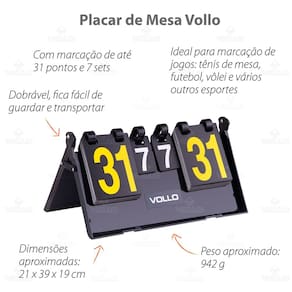 O Placar de Mesa Vollo é ideal para marcação de jogos, como, tênis de mesa, futebol, vôlei e vários outros esportes.