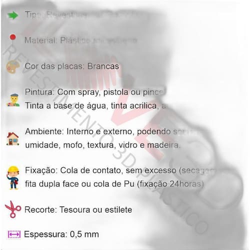 Essas placas são ideais para serem utilizadas em ambientes internos e externos. Elas podem ser instaladas sobre umidade, mofo, textura, vidro e madeira. Além disso, são compatíveis com diferentes tipos de pintura, como tinta a base de água, acrílica, acetinado ou fosco. A pintura pode ser feita com compressor de ar, pincel ou spray.
