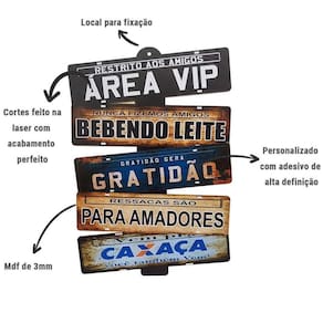 Placas de carros 5 frases decorativas parede - área vip - restrito aos amigos 5 placas de carros com frases mix para parede em madeira decorativa 5 placas de carros decorativas com frases mix em madeira ecológica e sustentável de alta qualidade e durabilidade é indicada para decorar sua casa, área do churrasco, salas e varandas com muita criatividade e estilo. Esta placa decorativa vai deixar o seu ambiente favorito mais leve e com estilo, a parte traseira conta com suporte para dependurar o produto, imagem com impressão digital auto brilho no vinil em alta resolução. Deixe o seu cantinho favorito da casa, áreas gourmet, salas e varandas com um clima agradável, alegre e descontraído, sendo também uma ótima opção de presente. Dimensões em centímetros: - dimensões cm : altura: 30 cm x comprimento: 20 cm x espessura: 3 mm. Características do produto: - confeccionado em madeira mdf ecológica de alta qualidade e durabilidade. - quadro com gancho para dependurar, cortado a laser e com imagem em vinil em alta resolução. - produzido por artesões profissionais seguindo um padrão de qualidade que atenda o gosto dos nossos clientes Cuidados: - recomendamos o uso de pano levemente umedecido para sua limpeza. do produto: - o produto é muito bem acomodado dentro da caixa, e super embalado para evitar quebras, ainda assim possuímos um sistema de e troca. Imagens meramente ilustrativas - produto artesanal, podendo variar de cor e/ou tonalidade Marca: Retrofenna Decor