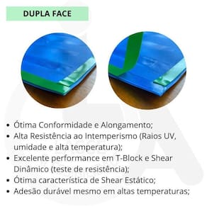 O kit inclui uma fita dupla face de alta qualidade, reconhecida por sua flexibilidade, resistência ao intemperismo UV, umidade e altas temperaturas e durabilidade. Essa fita é ideal para fixações seguras, mesmo em condições adversas. Sua adesão permanece confiável, inclusive em altas temperaturas, garantindo um desempenho excepcional.