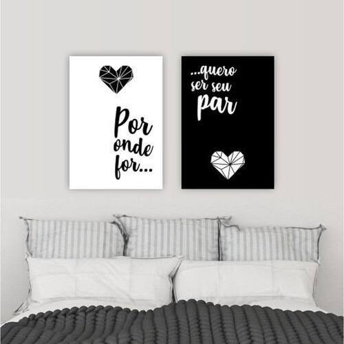 Kit 2 quadros decorativos quarto casal 50x35cm por onde for quero ser seu par