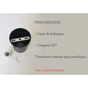 Nós da Acende a Luz procuramos trazer o que há de mais atual e moderno no mundo da Iluminação priorizando sempre a qualidade. Procuramos não apenas atender às suas necessidades, mas superar expectativas. Assim estabelecendo uma relação de confiançaNossa missão é garantir a satisfação total dos nossos clientes.Os spots de sobrepor são luminárias modernas e que proporcionam um lindo acabamento, mais sofisticado. São capazes de prover uma iluminação eficiente e diferenciada. Os spot de sobrepor Par20 tem o acabamento impecável, possuem recuo na lâmpada proporcionando maior conforto visual, são direcionáveis e de fácil instalação e manutenção. São perfeitos para deixar o seu ambiente mais bonito e confortável. Possui sistema click, no qual não é necessário retirar o spot para troca de lâmpada. Descrição:- Material: ABS- Cor: Preto- Dimensões: Diâmetro: 11 cm Altura: 15 cm- Tipo de lâmpada: Par20- Potência máxima: 40W- Tensão: 100V - 240V- Grau de Proteção: IP20- Frequência: 50/60HZITENS INCLUSOS- 1 Spot de Sobrepor.- 1 Soquete E27. Parafusos e buchas para instalação. - Possuem foco Direcionável- Fácil Limpeza pano seco sem produtos abrasivos - Possui sistema click, no qual não é necessário retirar o spot para troca de lâmpada.- Uso externo / interno - Não Acompanha Lâmpada -