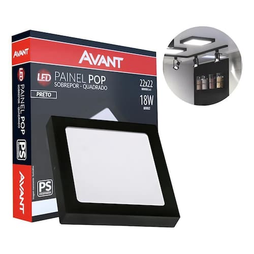 Plafon Led Quadrado Sobrepor Branco Painel 18W Slim Preto