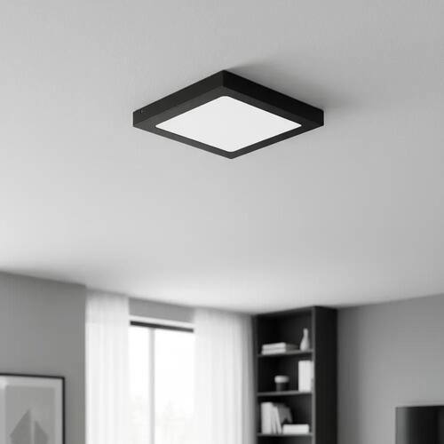 Plafon Led Quadrado Sobrepor Branco Painel 18W Slim Preto -