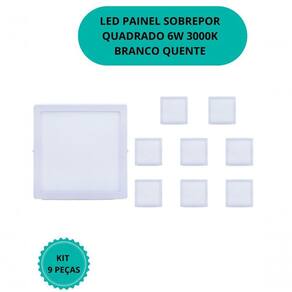 PLAFON LED QUADRADO SLIM SOBREPOR 6W 3000K KIT 9