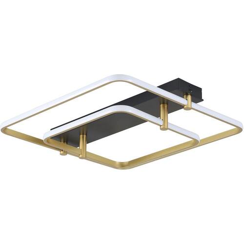PLAFON LISTO 58CMX58CM PRETO E DOURADO BIVOLT 58W 3000K METAL E ALUMÍNIO
