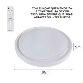 Plafon Moderno Led Zony 50Cm 36W Com Controle Remoto Nordecor O plafon Led Zony da Nordecor é ideal para Iluminar e decorar diversos ambientes, conta com três opções de tons do Led em Luz amarelada 3.000k, Luz neutra 4000k e Luz fria 6500k, também pode dimerizar a intensidade da Luz na função do controle remoto.