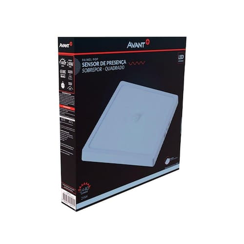 Características Principais do Produto: Cor: Branco Cor da Luz: Branco Formato: Quadrado Marca: Avant Potência: 24W Quantidade de Lúmens: 1440 Lúmens Tamanho: 22cm Tipo de Plafon: Painel LED Tipo de instalação: Embutir e Sobrepor Voltagem: Bivolt
