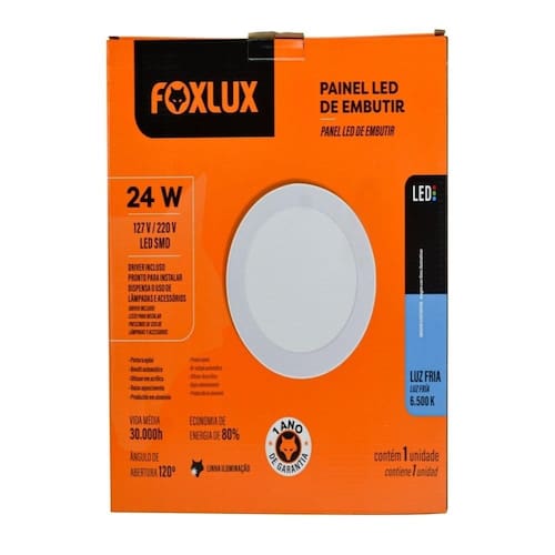 Garantia de 1 ano. Especificações Técnicas: Alimentação/Tensão Suportável: 100 - 240V Potência: 24W Fluxo Luminoso: 1900 lm Temperatura de Cor: 6.500K Frequência: 60Hz Vida Útil: 30.000 horas Índice de Proteção: IP20 Temperatura de Operação: -10°C a +40°C Dimerização: Não compatível