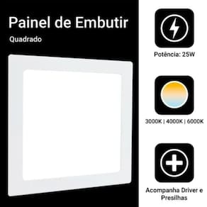 Plafon painel led 24w 25w embutir quadrado 3000k branco quente