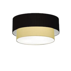 Plafon Para Banheiro Duplo Cilíndrico Vivare SB-3017 Cúpula Tecido 50x40cm Cor Preto / Bege - Bivolt