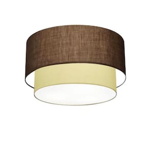 Plafon Para Banheiro Duplo Cilíndrico Vivare SB-3045 Cúpula Tecido 40x35cm Cor Café / Bege - Bivolt