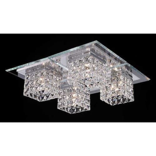 Cód: PL-001/4.40 Plafon Quadrado Cromado com Cristais Transparente Soquete: 4*G9 (Lâmpada não inclusa) Material: Cristais, Vidro e Aço Cor: Transparente e Cromado Dimensões: 40x17,5cm (LxA)