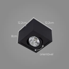 ESPECIFICAÇÕES TÉCNICAS: Marca: Orluce Modelo: OR1450 Cores disponíveis: Preto Material: Alumínio Tipo de Soquete: GU10 Número de soquetes: 1 un Tipo de lâmpada que utiliza: AR70 Voltagem: Bivolt Indicado para uso: interno Largura: 12,2cm Altura: 8cm Profundidade: 12,2cm Peso líquido: 0,307g Peso bruto: 0,371g Medidas da Caixa: 13 x 15 x 13,5cm Garantia: 1 ano